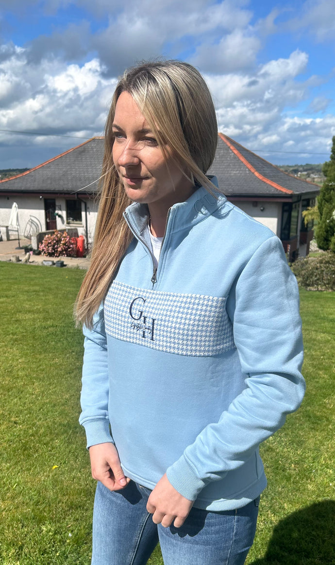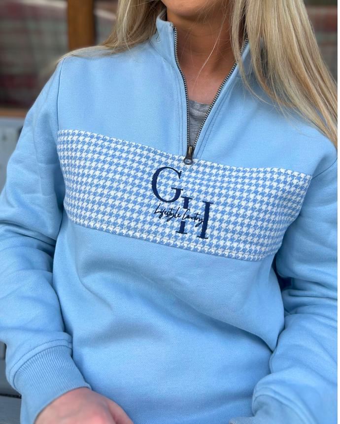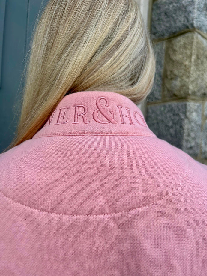 Ladies Quarter Zip - Baby Pink Houndstooth